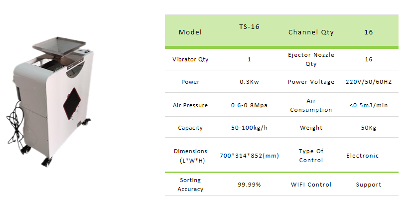 นี่คือ เครื่องคัดแยกกาแฟอัจฉริยะ AI ขนาดเล็กที่สุด เครื่องจักรนี้เป็นที่นิยมใช้กันอย่างแพร่หลายและมีหลายฟังก์ชัน ฮาร์ดแวร์และซอฟต์แวร์เหมือนกับเครื่องจักรขนาดใหญ่ หากคุณมีความต้องการการผลิตไม่สูงมาก และงบประมาณจำกัด เครื่องจักรนี้เป็นตัวเลือกที่ดีที่สุดของคุณ!