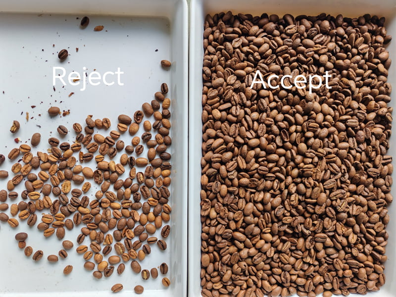 เมล็ดกาแฟคั่วที่ดี เมล็ดกาแฟคั่วที่มีตำหนิ