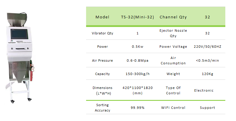 พารามิเตอร์ทางเทคนิคของเครื่องคัดแยกสีกาแฟขนาดเล็ก